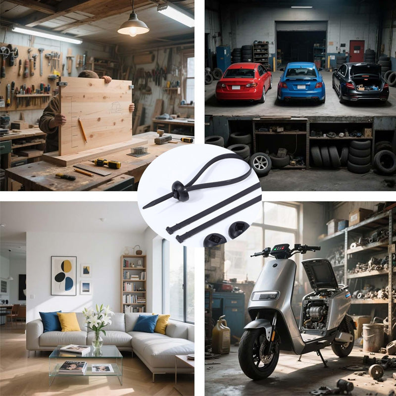 QUICK ONE-BUTTON INSTALLATION: Featuring a self-locking mechanism, these zip ties install easily without tools. Just push and lock, no extra steps required, saving time and effort during emergency repairs or DIY projects.